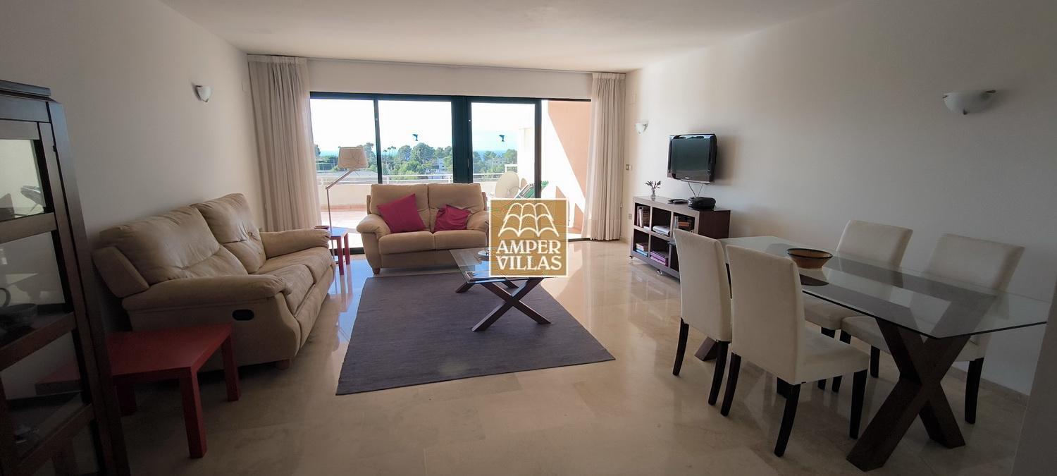Geräumige und gemütliche Wohnung mit 3 Schlafzimmer mit Einbauschränken, 2 Bädern, großem Wohn-/Esszimmer, ausgestatteter Küche mit Waschküche, 40 m² großer Terrasse mit Meer- und Bergblick, Marmorböden, Klimaanlage (kalt/warm), geschlossener Garage, Wohnanlage mit 2 Swimmingpools und schönen Gemeinschaftsgärten.