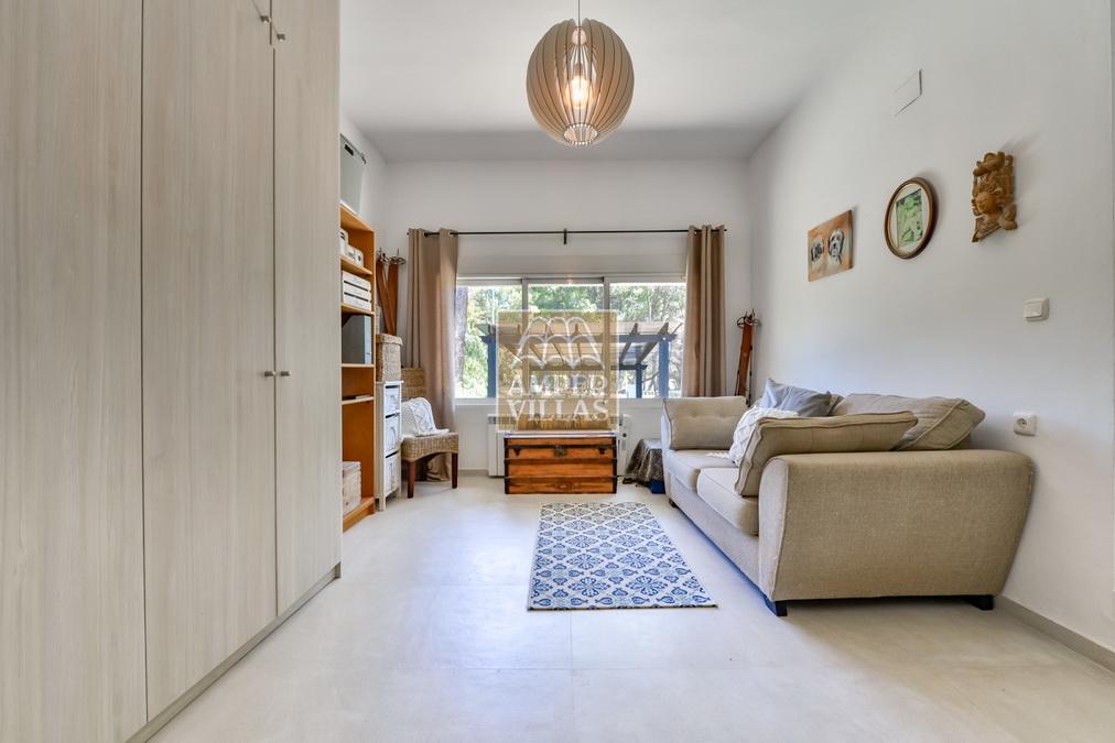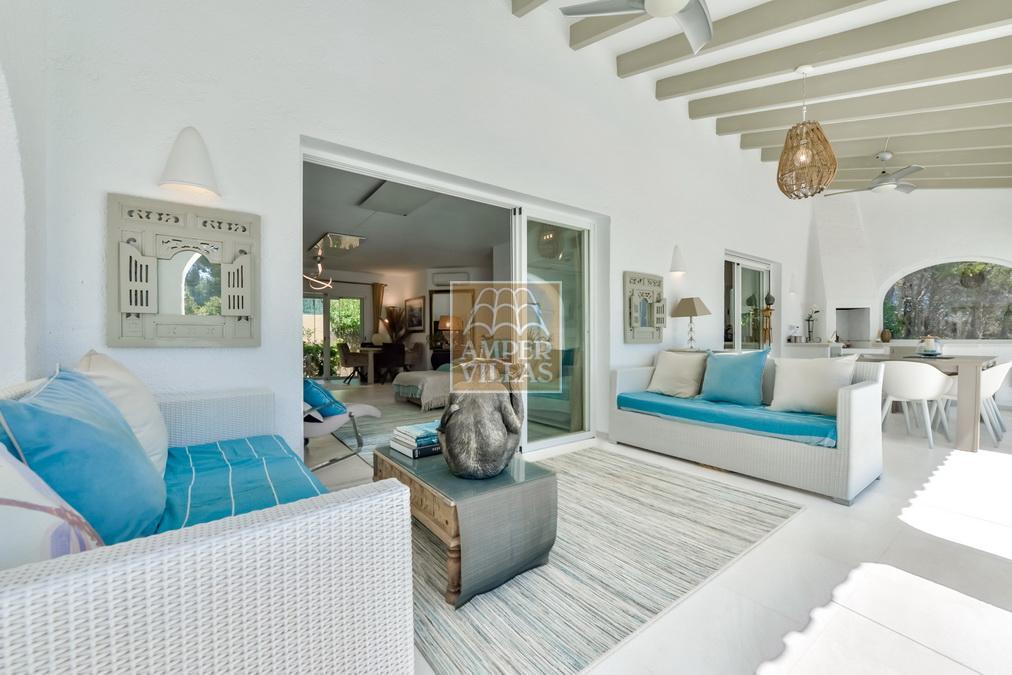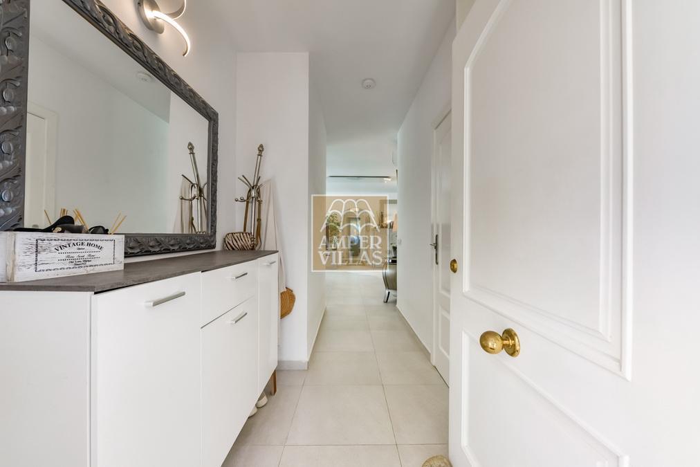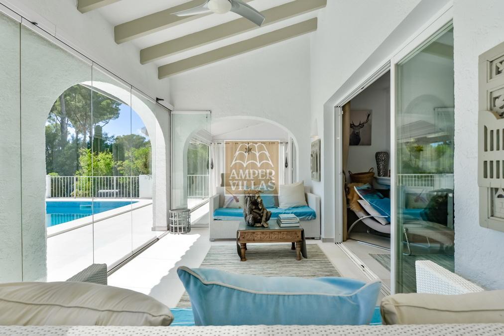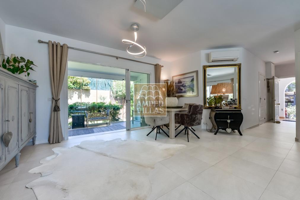 A fantastic villa in a peaceful, green setting, all on one level, featuring an entrance hall, a large living-dining room with a fireplace, and a beautiful separate kitchen, both opening directly onto the covered terrace. There are four bedrooms, each with an en-suite bathroom, and the master bedroom also opens directly onto the covered terrace. There is a glazed covered terrace at the front, leading onto the swimming pool, which is surrounded by open terraces. Another glazed covered terrace at the rear of the house. Hot and cold air conditioning, carport, south-facing.